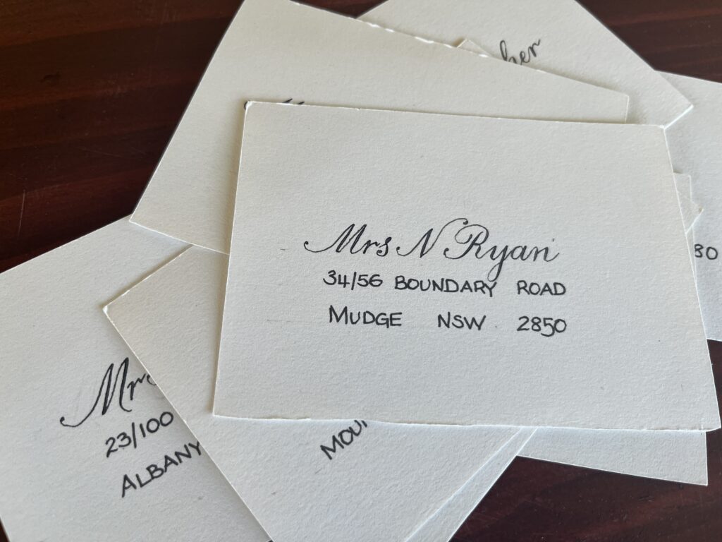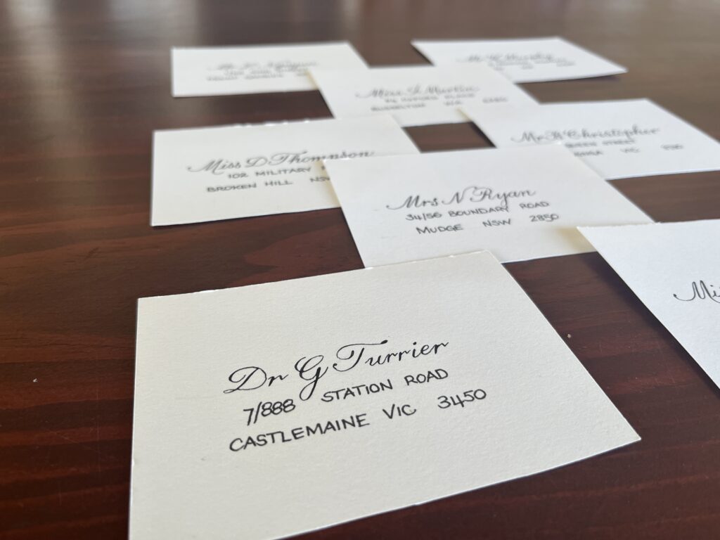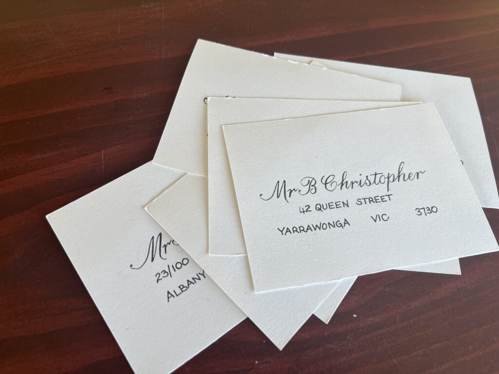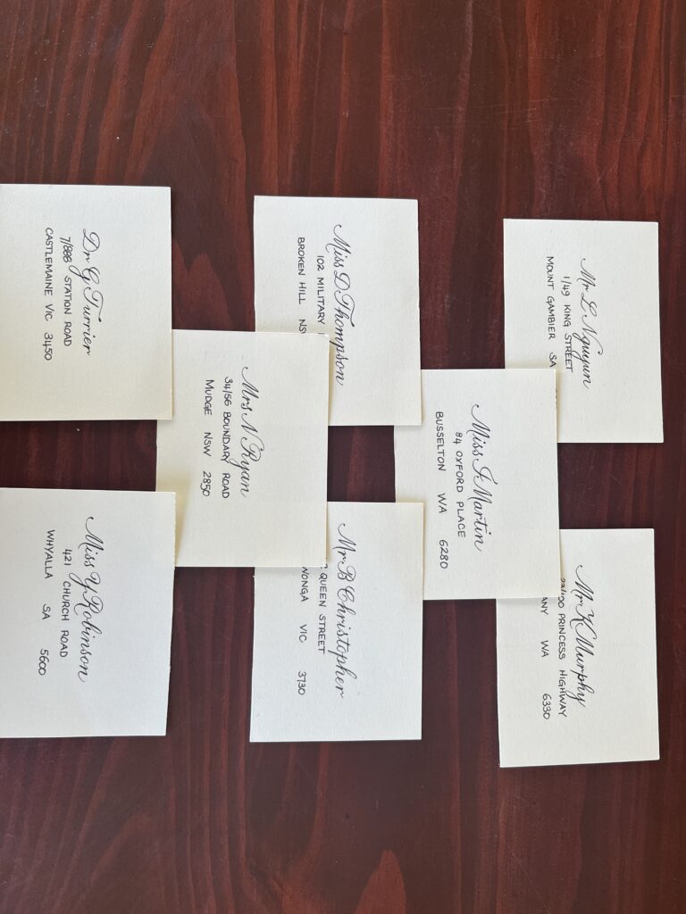 Portfolio photography is an important part of showing calligraphy professionally. Each image gives a window into the work, highlighting the care, detail, and artistry in every piece. From envelopes and placecards to finished projects, good photographs let viewers see the flow and texture of the letters.